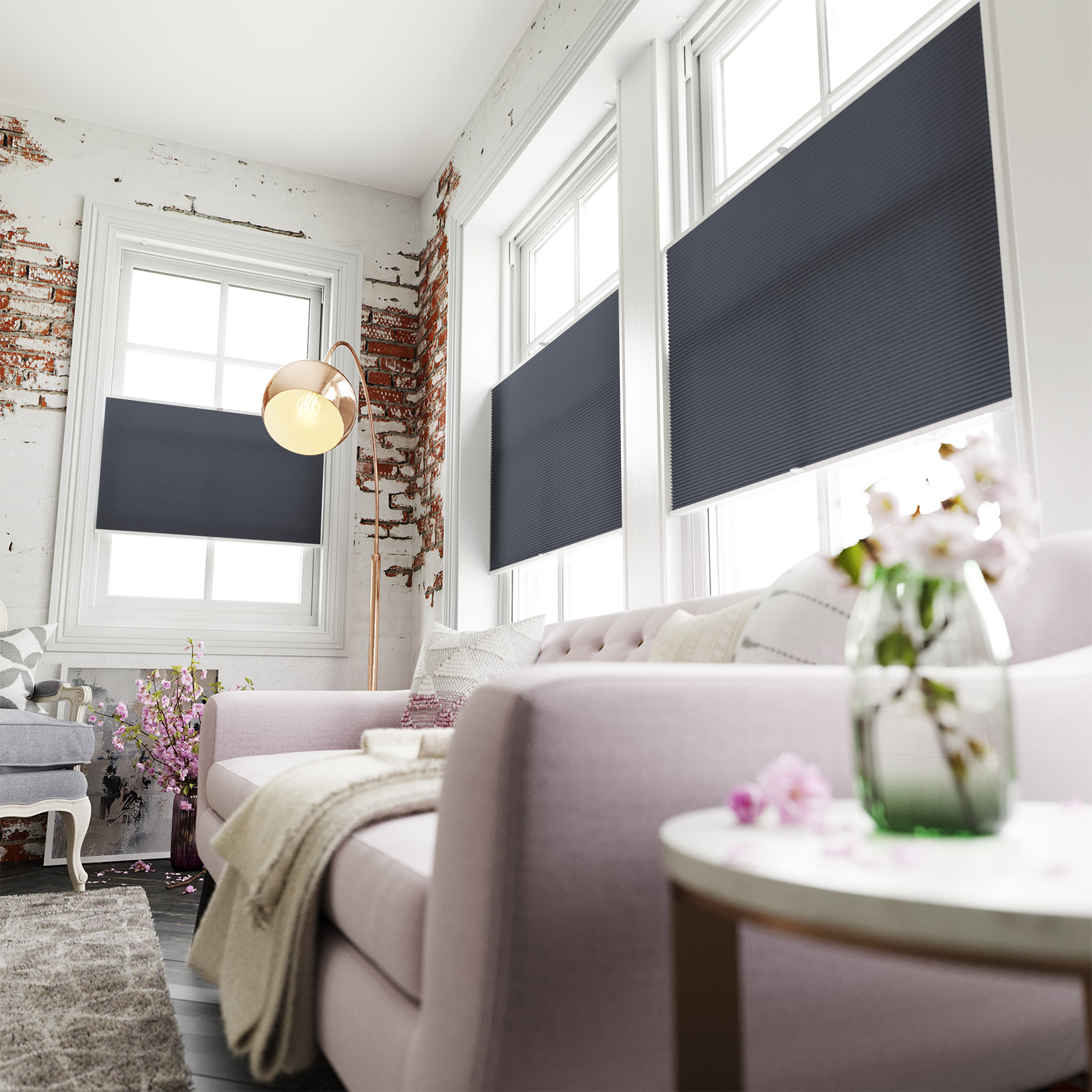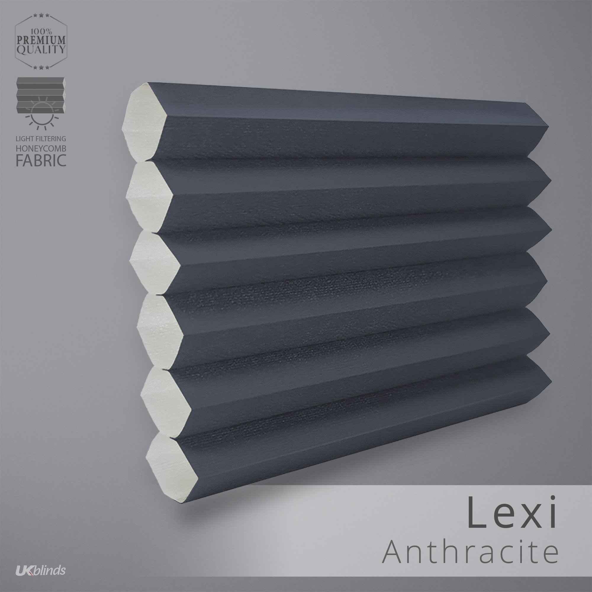 Pleated Perfectly Fitted Frameless Blind – Honeycomb Lexi Anthracite Grey
